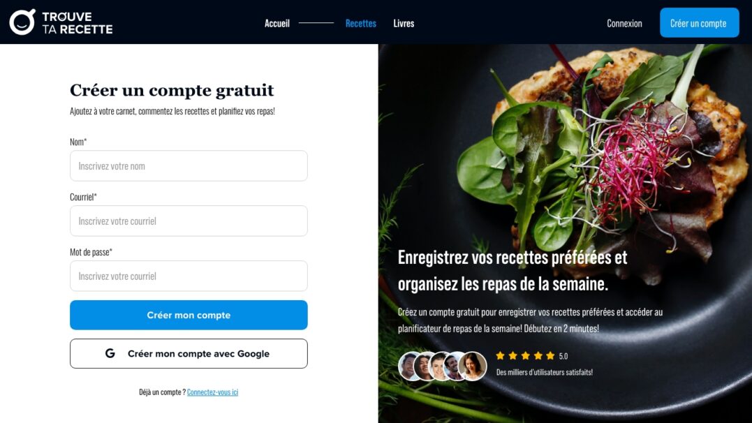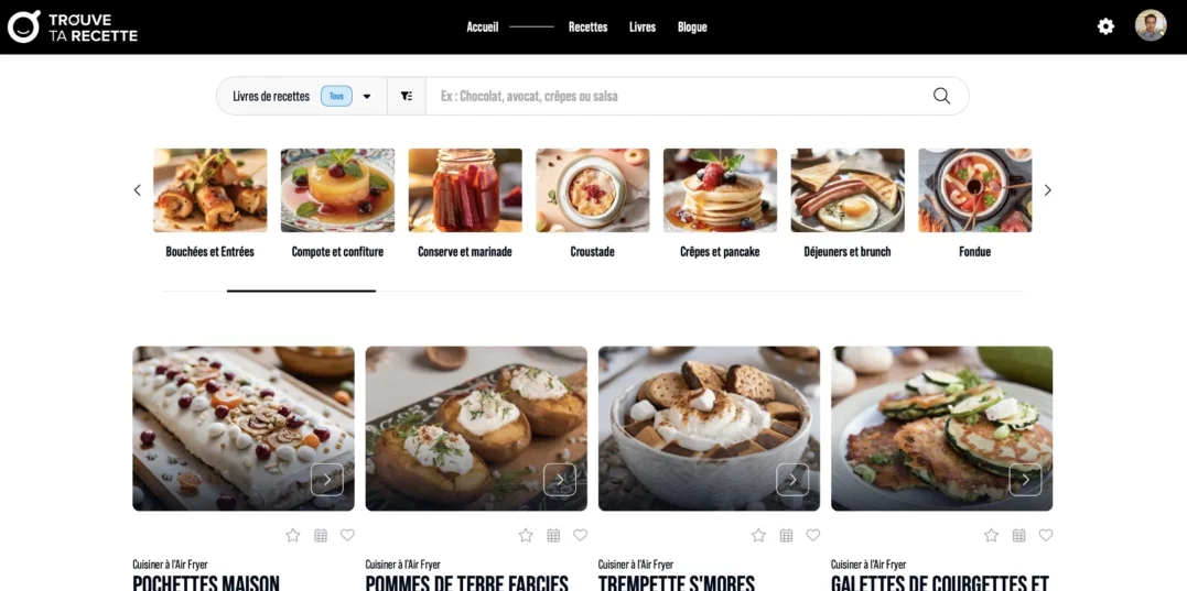 Notre agence web a collaboré avec Trouve Ta Recette pour concevoir un site web innovant, à la croisée des usages pratiques et du plaisir culinaire. Ce projet ambitieux visait à offrir une plateforme intuitive et performante permettant aux passionnés de cuisine de retrouver facilement leurs recettes préférées tout en tirant pleinement parti de leurs livres de cuisine.