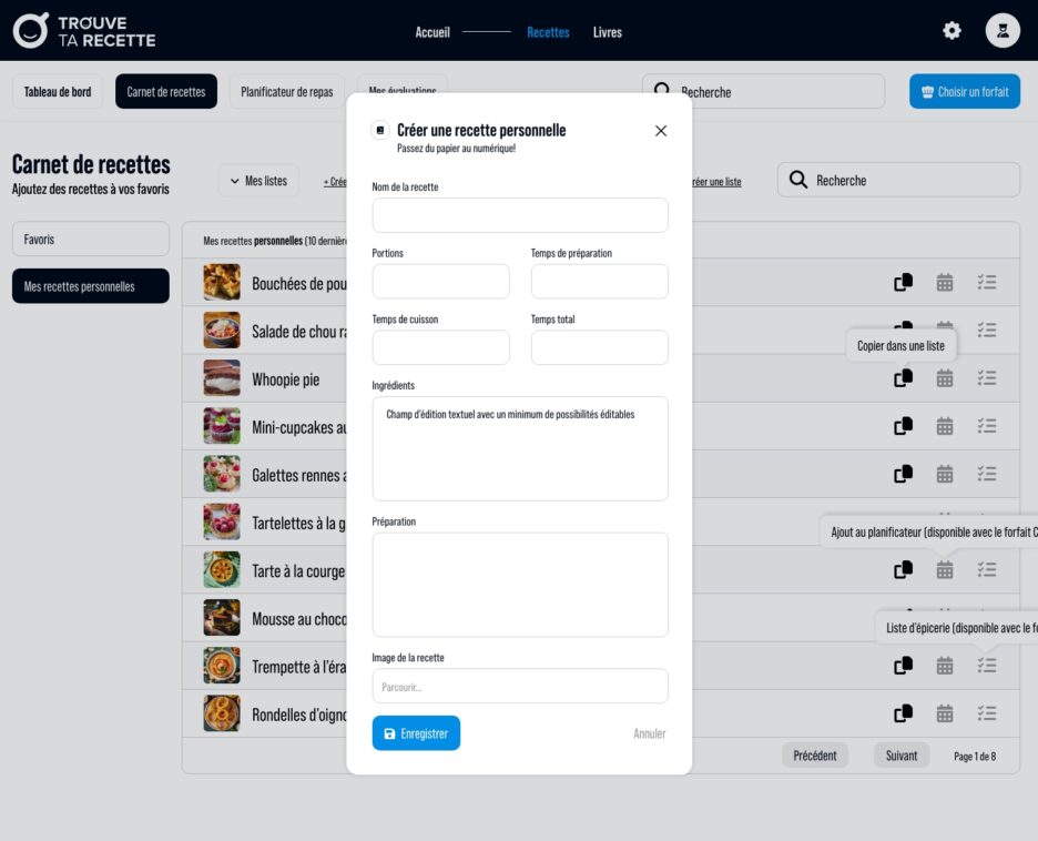L’objectif principal était de créer un espace numérique où l’utilisation des livres de recettes physiques se combine harmonieusement avec des outils digitaux modernes. Trouve Ta Recette souhaitait simplifier la recherche de recettes, favoriser l’organisation culinaire et inspirer sa communauté grâce à des fonctionnalités avancées facilement accessibles.